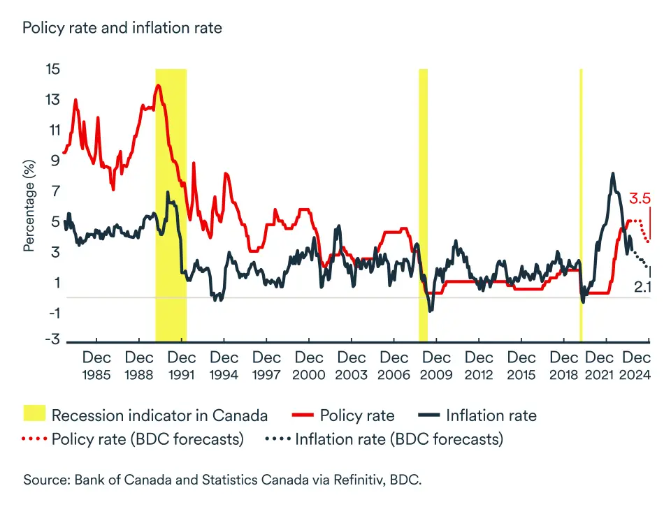 We anticipate that the Bank of Canada will begin lowering its key rate as early as this summer. However, the Bank is unlikely to bring the rate down to 2.5%, the neutral level, before 2025. Rates will remain higher than those to which Canadians have been used to over the past 15 years.