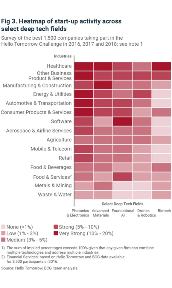 Deep technologies not only produce highly impactful businesses, but their influence is felt in every industry, often delivering game-changing benefits (Fig. 3). And, as their importance has grown, development and control over these technologies has become a critical national security issue as countries seek to gain advantage and exploit weaknesses in adversaries.