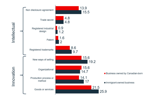 Figure 4: Innovation and intellectual property rates among immigrant and Canadian-born owners of SMEs