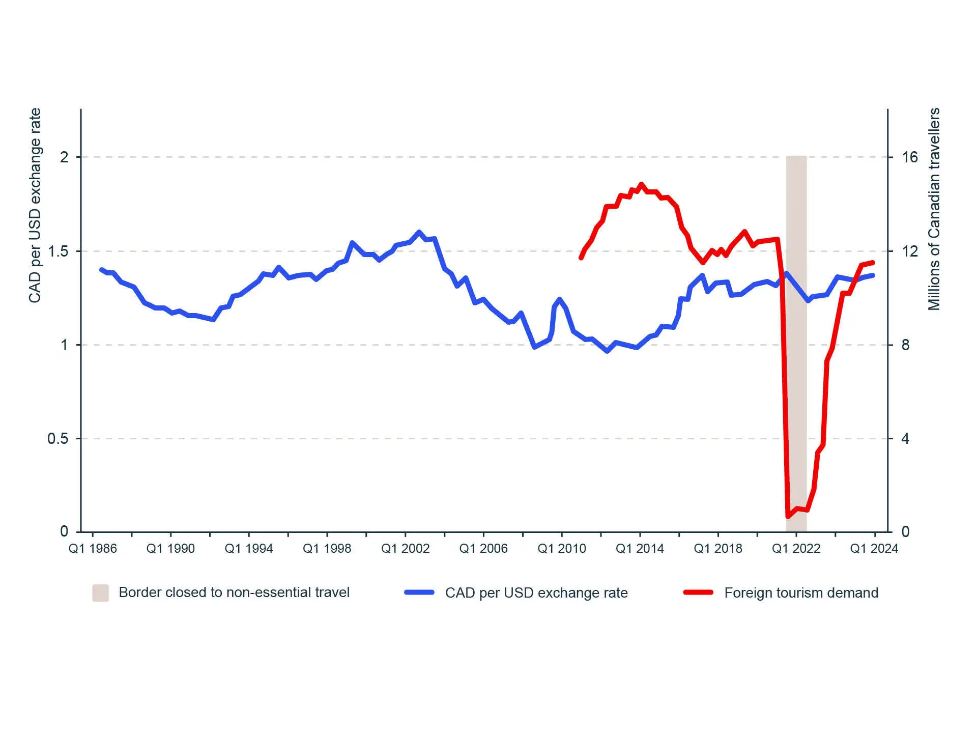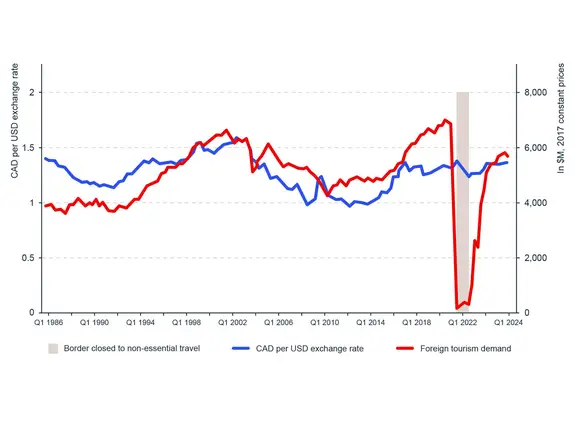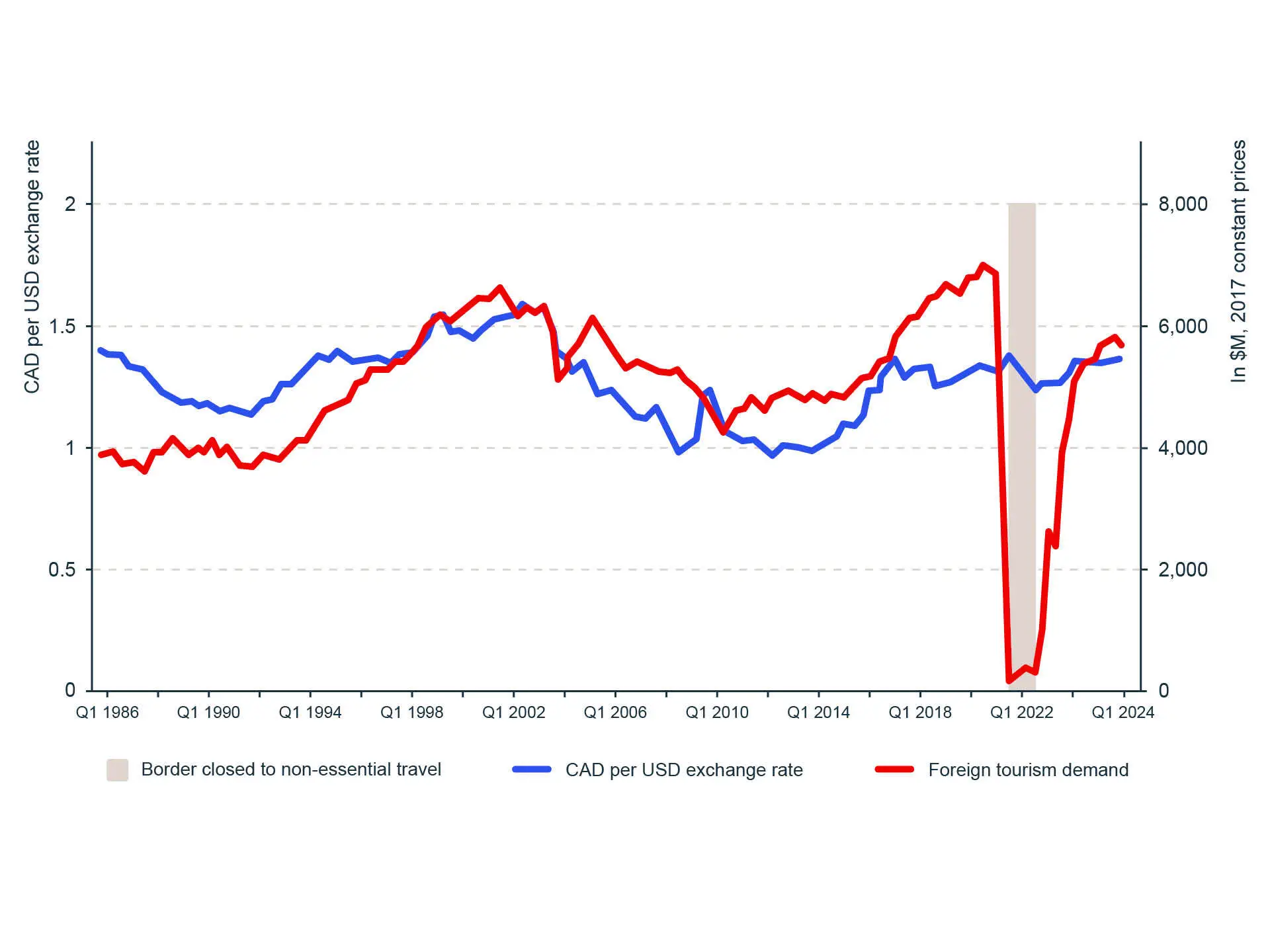Source: Statistics Canada, Tourism demand in Canada, Table: 36-10-0230-01 and Bank of Canada