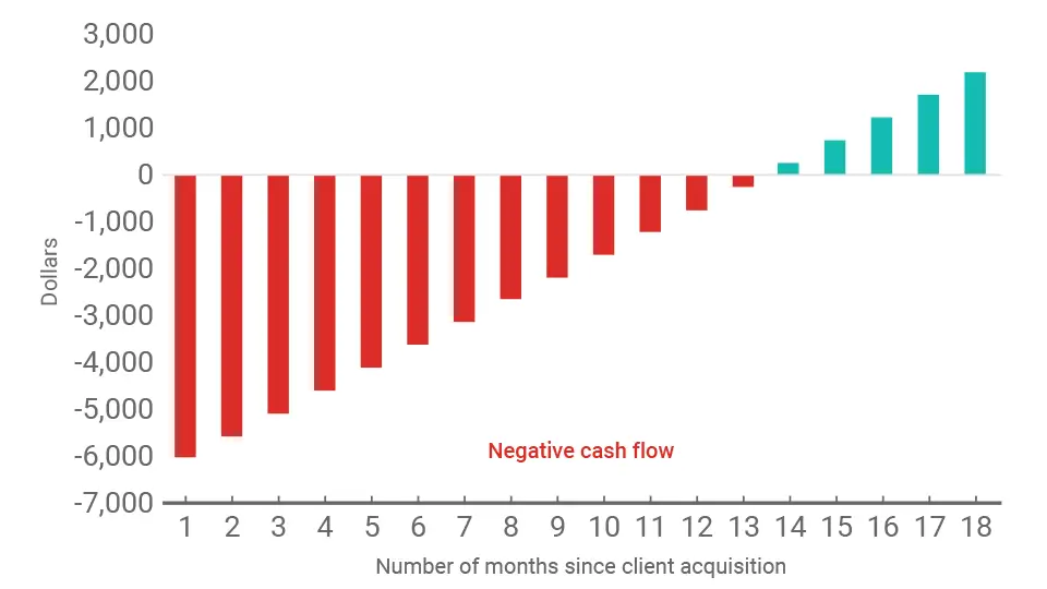 This approach could negatively impact cash flow in the short run. Indeed, each sale will take longer to become profitable for your company. Yet this strategy can help your business become more lucrative in the long run as it makes it easier to acquire new customers.