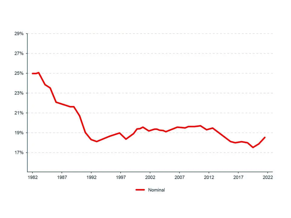 The graphic shows that the share of interprovincial trade as a percentage of GDP fell from 26.6% in 1981 to an average of 18.8% between 1992 and 2022.