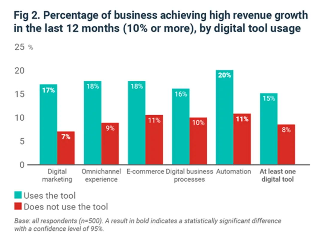 85% of companies that achieved high revenue growth (over 10%) in the previous year used at least one digital technology.