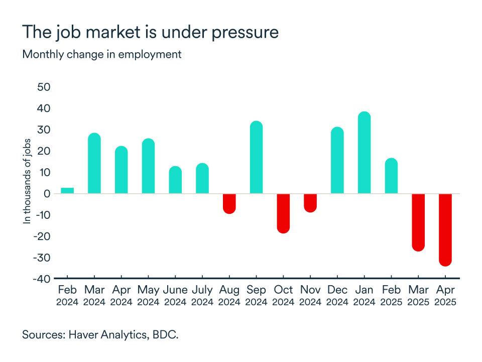 - The economic slowdown is concentrated in certain sectors, particularly those affected by U.S. tariffs and Canadian retaliatory levies. If your company operates in these sectors, or if your supply chains are impacted, BDC can help you stay on track.