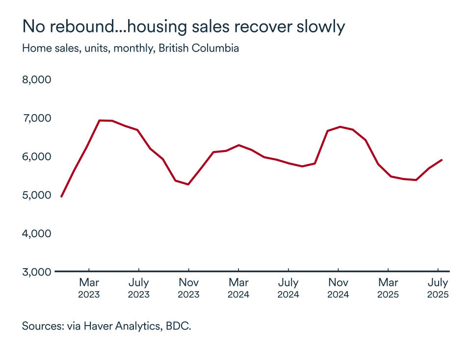 While less reliant on the U.S. than other provinces—53% of exports are shipped to the U.S. versus a national average of 77%—B.C. still felt the effects of U.S. tariffs in the first half of the year.