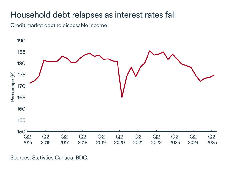 Lower borrowing costs meant that indebted households had more income available after debt repayment, and Canadians responded by spending that money.