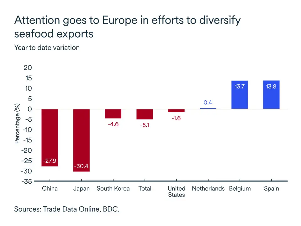 Nova Scotia’s efforts to diversify its economy are paying dividends. While total seafood exports decreased by 5.1%, dragged down by a strong decline in sales to China, the province was able to ship more to Europe, offsetting some of the losses.