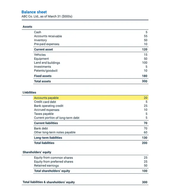 Example of accounts payable on a balance sheet