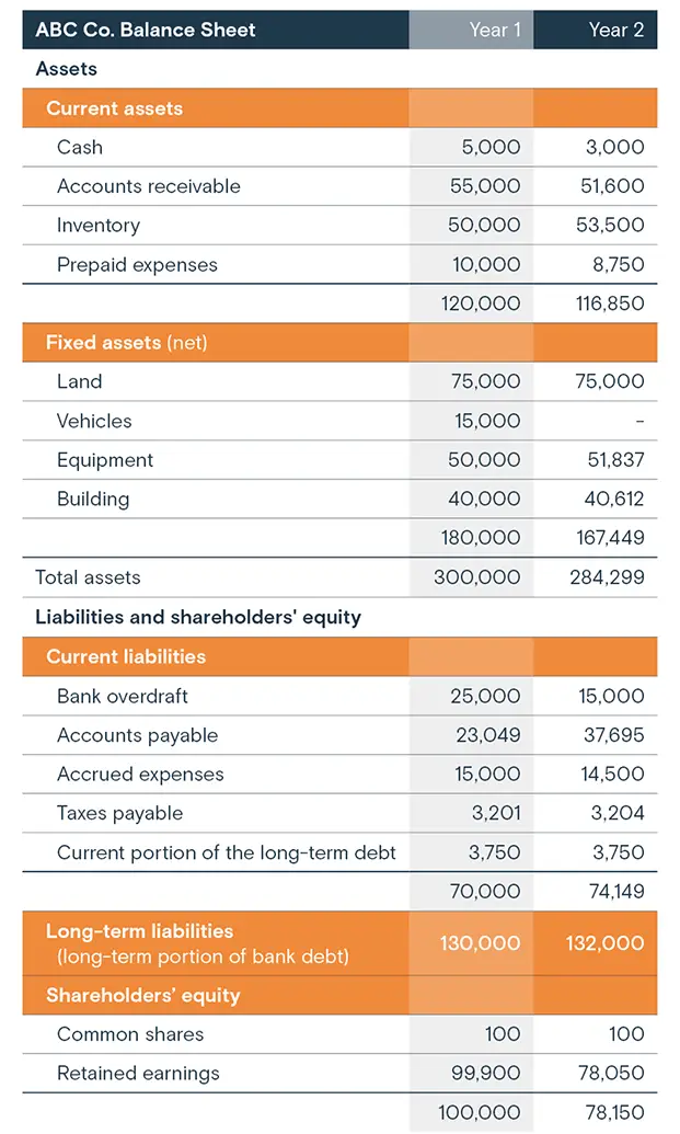 Showing two years on a balance sheet allows you to track changes from one reporting period to the next.