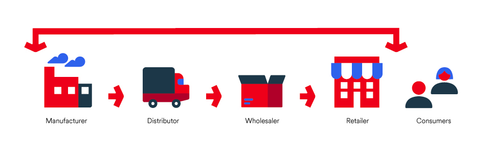 This image illustrates the business-to-business value chain. The chain ends at the retailer and does not include consumers.