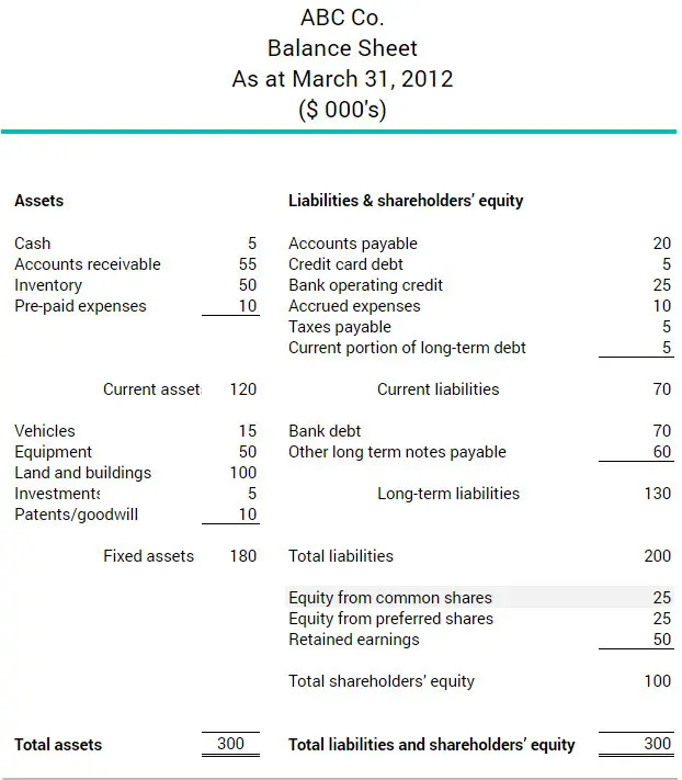 Both common and preferred shares appear under shareholders’ equity on the balance sheet, as shown in the sample below: