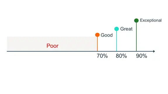 • Subscription services: Generally, 75-90% is considered good for most subscription-based models.