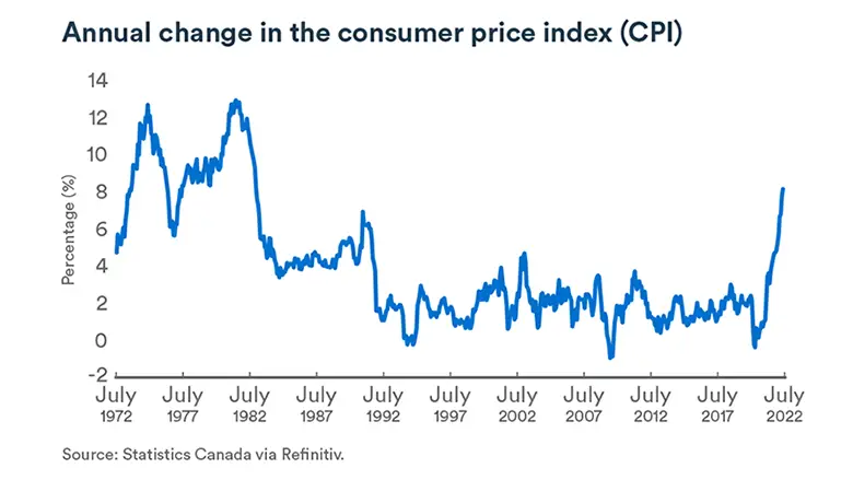 In the past 30 years, inflation has been fairly stable at about 2% per year. “However, in the 1970s and 1980s, it frequently reached about 8% per year and even 13%,” says Charbonneau.