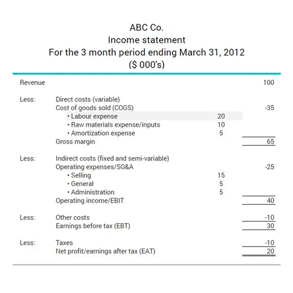 The excerpt below shows how labour expenses appear on a company’s income statement. At $20,000 they represent 57% of the cost of goods sold.