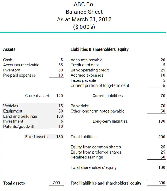 The balance sheet below shows that ABC Co. owned $180,000 in long-term assets as of March 31, 2012. With $130,000 in long-term liabilities, the company had $1.40 in long-term assets for every $1 in long-term debt; this is a healthy balance.