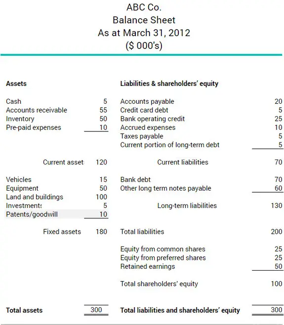 As you can see in this example, patents appear in the balance sheet under the heading patents and goodwill.