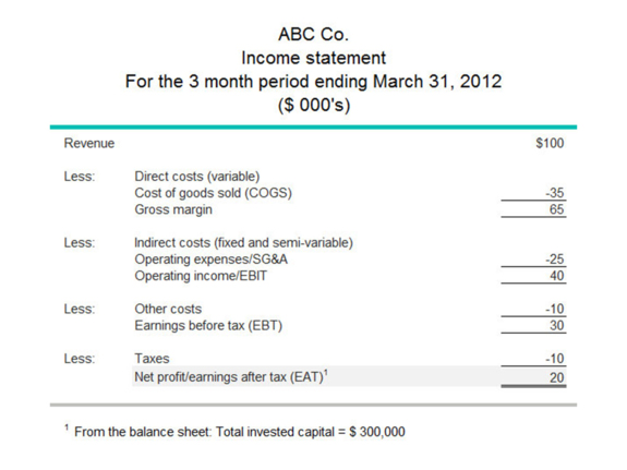 The example below shows how ROI is calculated when ABC Company’s earnings after tax equal $20,000 and its total invested capital is $300,000:
