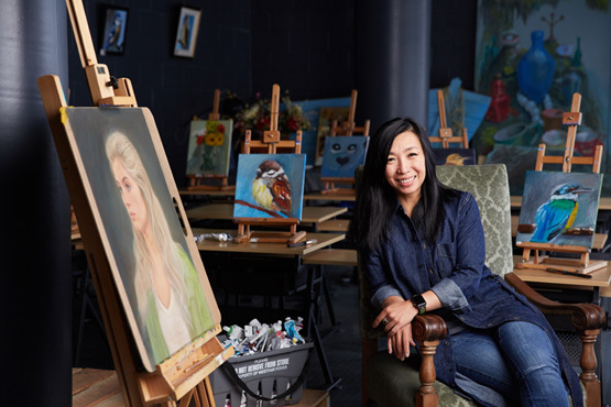 She began offering children’s art classes out of her dining room. Word spread. Within two months, she had rented a studio and the Lily Yuan Art Studio and Gallery was born. Classes were packed, with demand for more. In addition to nurturing creativity in young ones, the artistic entrepreneur had other ideas, including teaching adults and offering fun but high-quality paint nights.