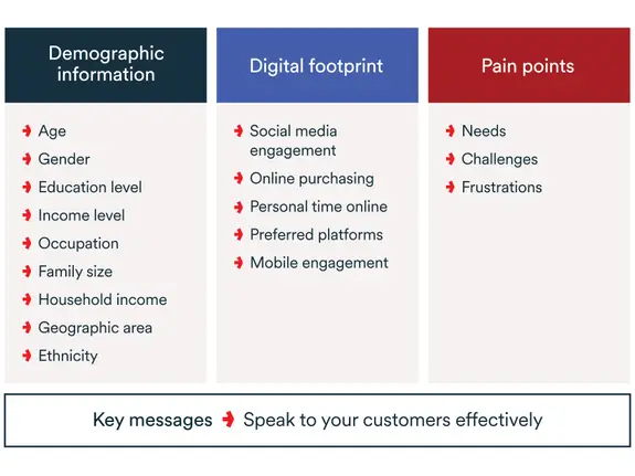 Start by figuring out who your most important or ideal customers are. This is usually done by trying to create personas—imaginary characters that represent the customer types you are trying to attract. Try to come up with a profile for this customer based on the following demographics and traits: