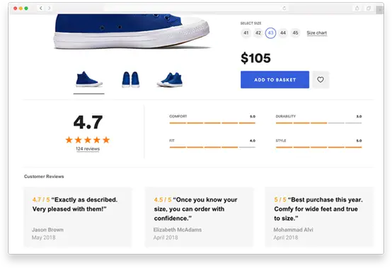 Social proof is the idea that people follow the lead of others. Endorsements of your products from customers, experts, celebrities or organizations give psychological comfort to visitors that they’re making a good choice buying from you.