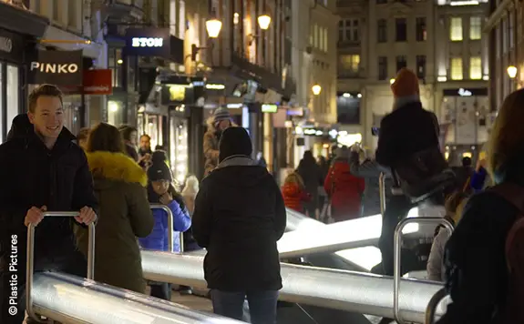 The quirky seesaws his team had designed for Montreal’s downtown festival district had been an instant hit with kids and adults alike. The 30 seesaws light up and emit sounds in unison to create a playful symphony as people go up and down.