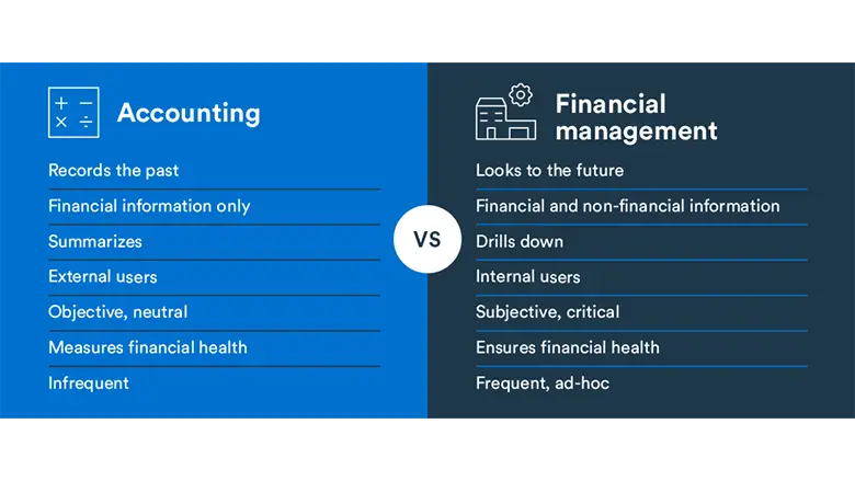 Accounting is a professional activity that involves recording and summarizing a company’s financial transactions. Financial management uses that accounting information to analyze financial information and guide management decision-making.