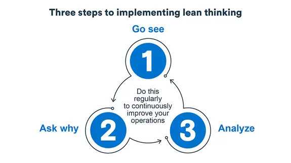 Lean is a methodology focused especially on reducing waste—i.e. non-value-added activity in a business. It’s often associated with manufacturing, but it can be used for any kind of company. Lean uses three steps to eliminate waste.