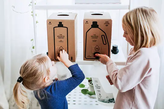 Unscented offers bulk-buying at several points of sale. But while these products account for nearly 40% of the company's sales, not every customer shops that way. Rouleau has found other solutions. For example, she sells her laundry detergent in a 2-litre plastic container, with the option of buying 4-litre or 10-litre refills in a cardboard box that includes a plastic bag.