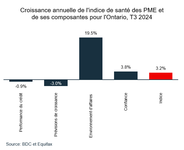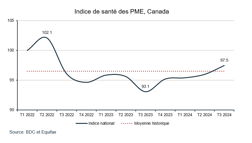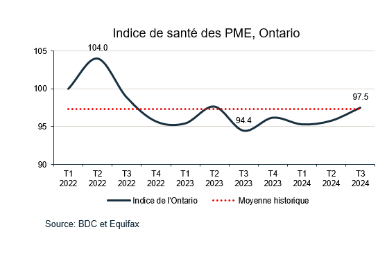 La santé des PME de l’Ontario s’améliore depuis le début de 2024, avec un indice atteignant 97,5 au T3 2024 — soit une croissance de 3,2 % d’une année à l’autre et de 1,8 % par rapport au trimestre précédent.
