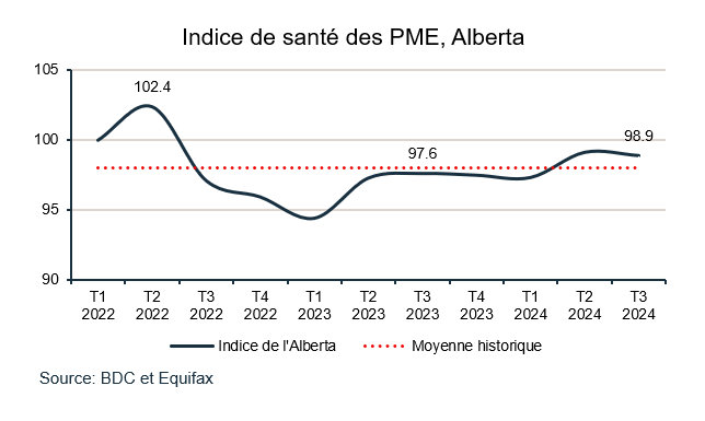 Par rapport aux autres régions, la santé des PME de l’Alberta a été moins touchée par les hausses de taux d’intérêt de la Banque du Canada en 2022. L’économie de l’Alberta a été plus robuste en 2023, soutenue par les secteurs résidentiel, pétrolier et gazier, ce dernier bénéficiant du lancement de l’expansion tant attendue du réseau d’oléoducs Trans Mountain. Ces secteurs devraient continuer de soutenir l’économie et les entreprises de l’Alberta en 2024.