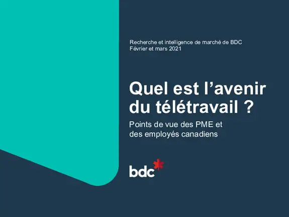La pandémie de COVID-19 a fait augmenter considérablement le nombre de personnes qui travaillent à domicile, mais cette tendance est-elle là pour de bon? Pour le savoir, BDC a mené deux sondages - un auprès de plus de 700 petites entreprises et l’autre, auprès de 2 000 travailleuses et travailleurs du Canada - afin de comprendre l’incidence du télétravail sur ces personnes ainsi que leur perception de l’avenir de celui-ci.