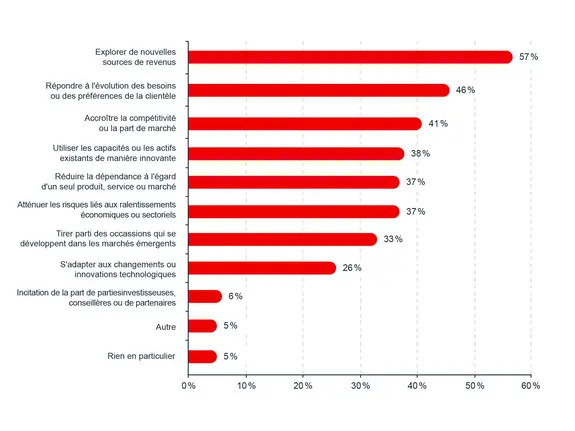 Sur le plan des motivations qui poussent les entreprises canadiennes à explorer davantage la diversification, deux facteurs se démarquent dans le sondage.