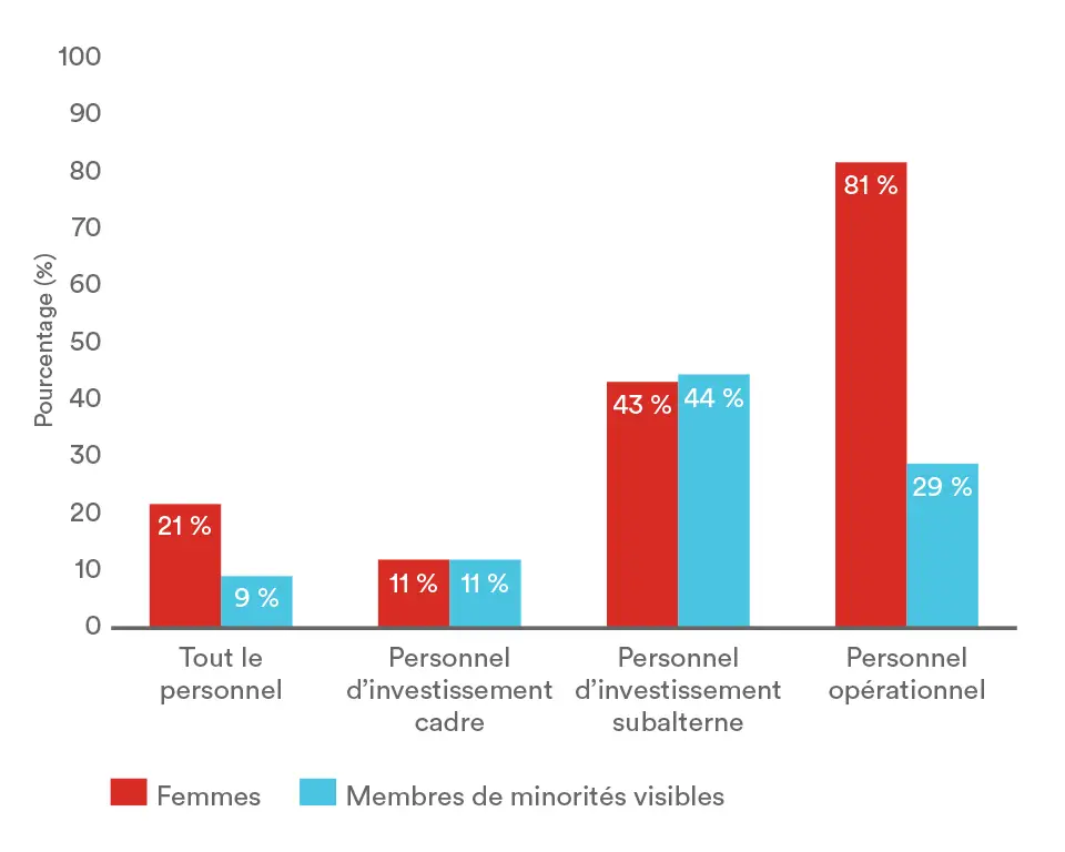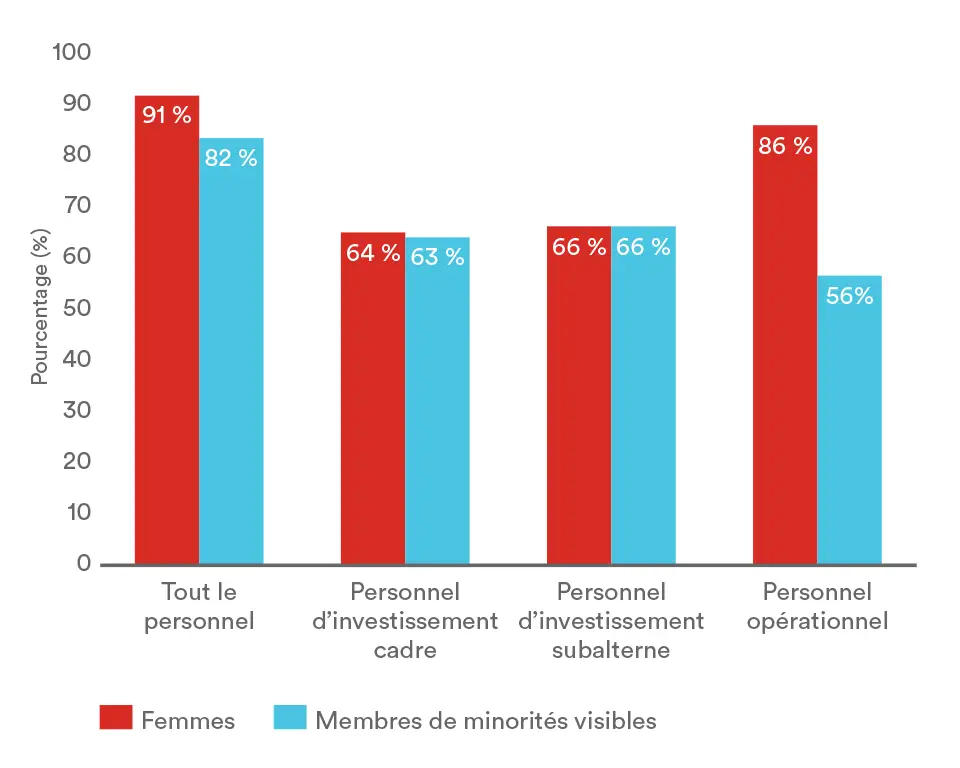 1. Il y a un manque diversité parmi le personnel d’investissement cadre, mais la diversité est plus importante parmi le personnel d’investissement subalterne et le personnel opérationnel