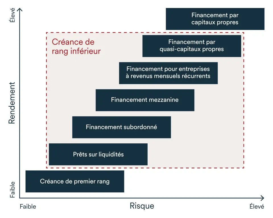 La dette de rang inférieur se situe entre les capitaux propres et la dette prioritaire sur le plan des risques et du rendement