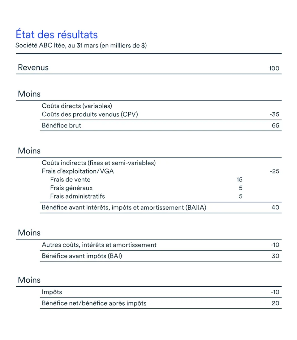 Comme les VGA ne sont pas considérés comme faisant partie du coût des produits vendus (CPV), ils sont inscrits entre le CPV et le poste intérêts et dépréciation dans l’état des résultats.