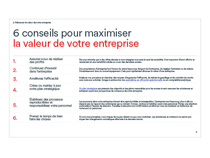 Comment maintenir la valeur de votre entreprise et l’augmenter au profit de des parties impliquées.