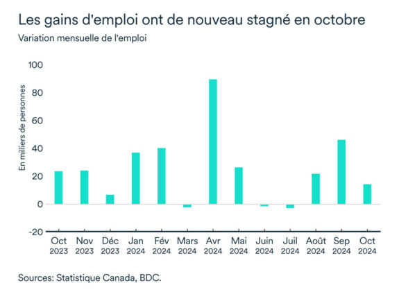 Après le regain d’emploi créé par le secteur privé en septembre, le marché du travail canadien s’est maintenu assez stable en octobre. L’économie canadienne aura créé près de 15 000 emplois au net au cours du dernier mois.