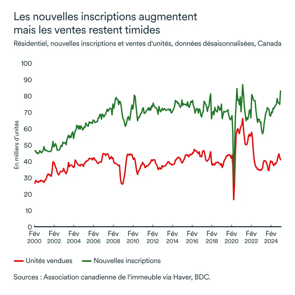 Les ventes de logements ont rapidement réagi à la baisse des taux d'intérêt au second semestre 2024, mais l'incertitude accrue freine l'activité en ce début d'année.