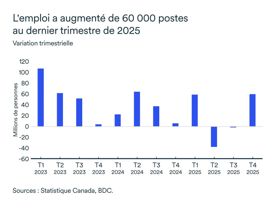 Le marché de l'emploi s'est raffermi à la fin de l’année, créant ainsi 94 800 postes pour l’ensemble de l’année et compensant toutes les pertes d'emploi enregistrées en 2025.
