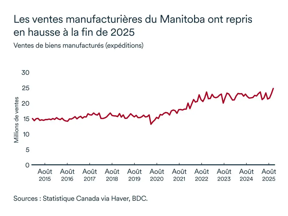 L’économie manitobaine, bien que très diversifiée, est plus sensible aux fluctuations nationales. Les barrières interprovinciales devraient continuer à s'atténuer en 2026, ce qui est une aubaine pour la province qui dépend fortement du commerce intérieur.