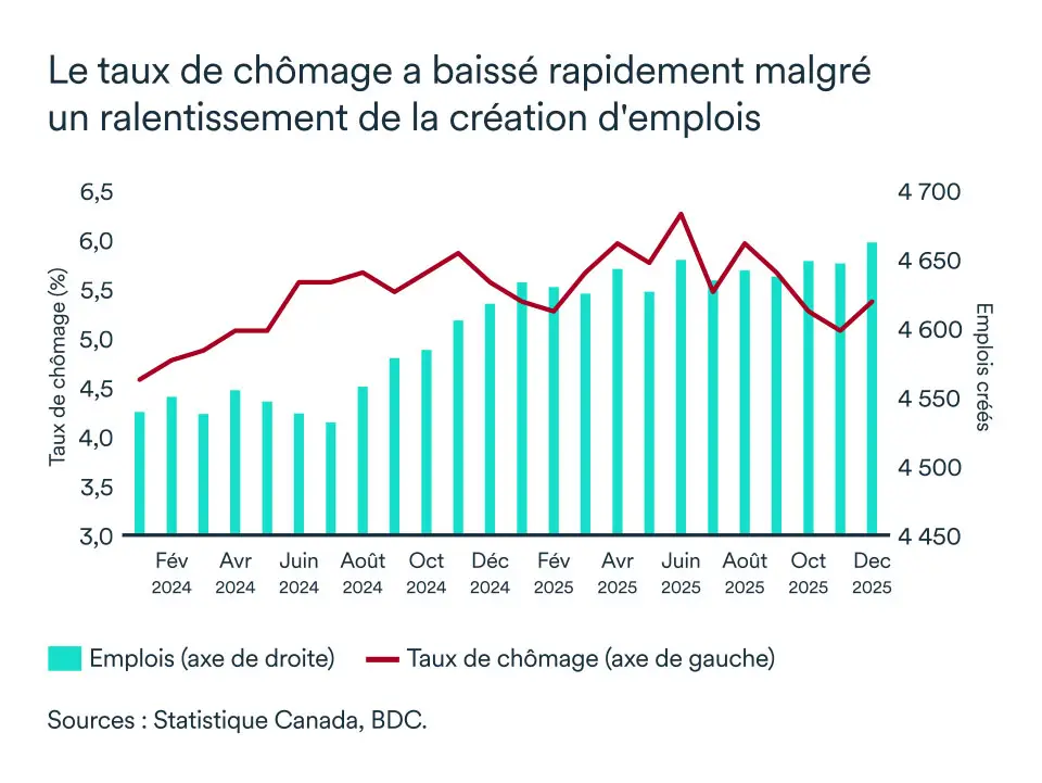 Le marché de l'emploi s'est raffermi en 2025 et le taux de chômage a baissé à 6,6 %.