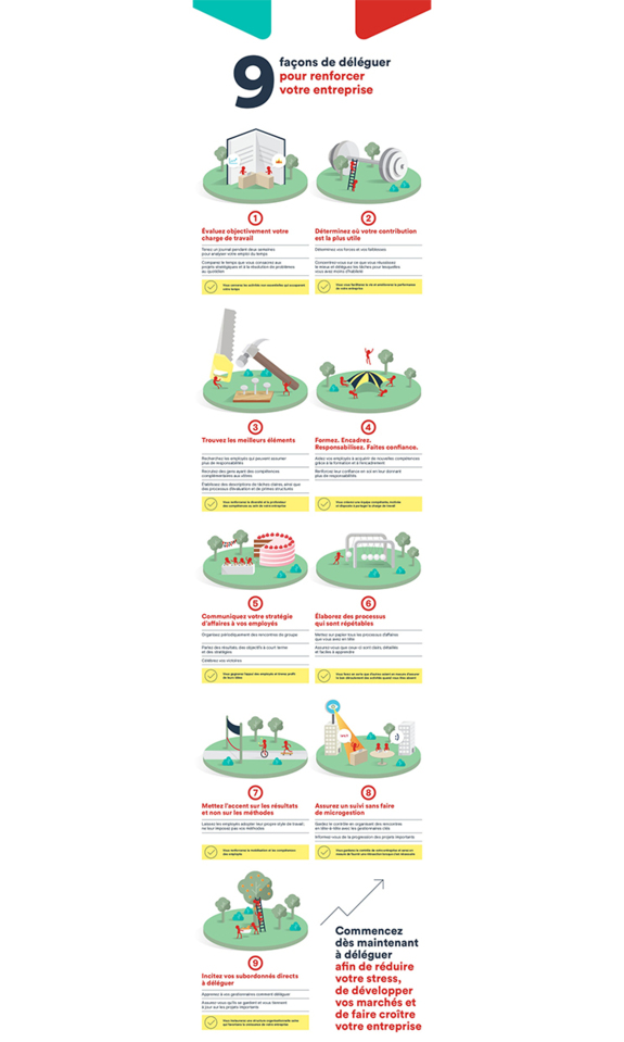 Pour beaucoup de propriétaires et de gestionnaires, le fait de ne pas déléguer suffisamment de tâches est un obstacle qui provoque du stress tant sur le plan personnel que professionnel en plus d’entraver la croissance de leur entreprise.