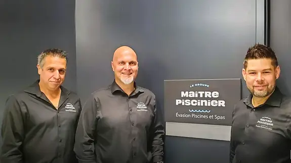 Jocelyn Beaumier, Patrick Vézina et Martin Contant, de gauche à droite, sont propriétaires de Évasion Piscines et Spas à Gatineau, Quebec