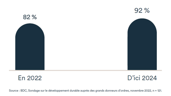 Une étude de 2023 de BDC, dans le cadre de laquelle on a sondé les grands donneurs d’ordres publics et privés, a révélé que 82 % d’entre eux exigent de leurs fournisseuses et fournisseurs qu’ils divulguent des informations sur au moins un critère ESG. Les données montrent qu’un plus grand nombre de donneurs d’ordres ont l’intention d’exiger des rapports sur les facteurs ESG de leurs fournisseuses et fournisseurs, et Pierre Cléroux, économiste en chef de BDC, prédit que «cette tendance sera particulièrement prononcée pour les entreprises qui cherchent à conclure des ventes avec des grandes sociétés ou des organismes du secteur public».