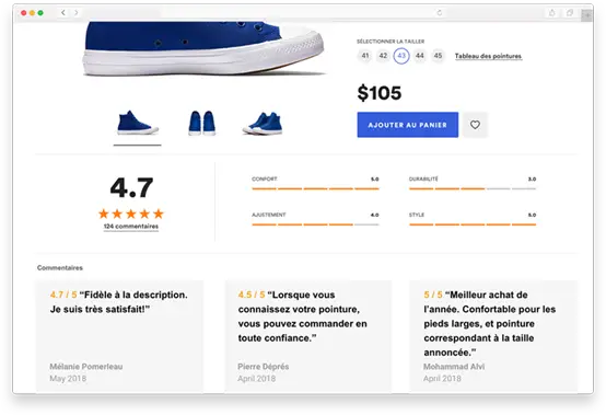 - d’évaluations et d’avis (pensez à Amazon);