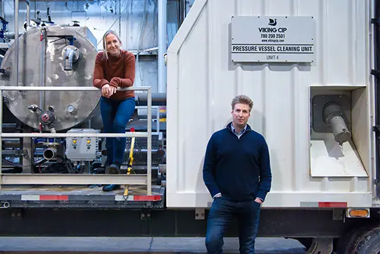 L’entreprise de M. Popiel, Team Viking, établie à Edmonton, se concentre sur le nettoyage chimique mobile dans le secteur de l’industrie lourde. Elle nettoie tous les types de réservoirs sous pression, notamment les échangeurs de chaleur et les réservoirs de stockage, sur place.